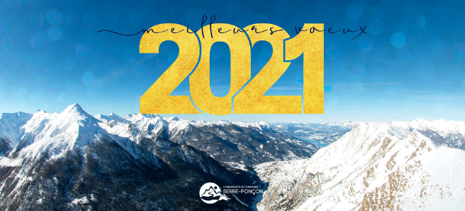 04 janvier 2021 La présidente de la Communauté de Communes de Serre-Ponçon, Les maires du territoires, Les conseillers communautaires, Les agents, vous adressent leurs meilleurs voeux pour 2021. Infos pratiques Communauté de Communes de Serre-Ponçon 04 92 43 22 78 Nous contacter A ne pas manquer Actualités Evénements