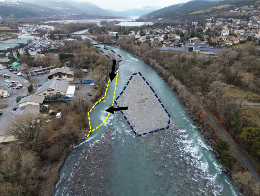 Ces travaux, financés par la Communauté de communes de Serre-Ponçon au titre de la compétence GEMAPI (Gestion des Milieux Aquatiques et Prévention des Inondations), visent à limiter l’érosion du talus côté rive gauche près des bâtiments et à réduire les contraintes sur la route-digue RD467 côté rive droite.